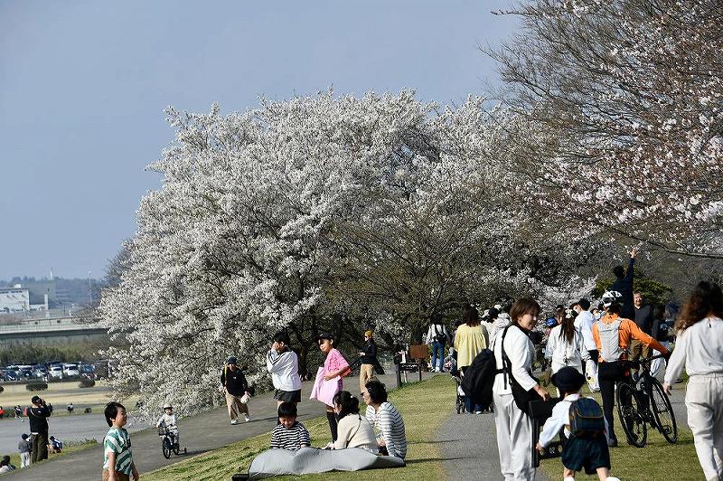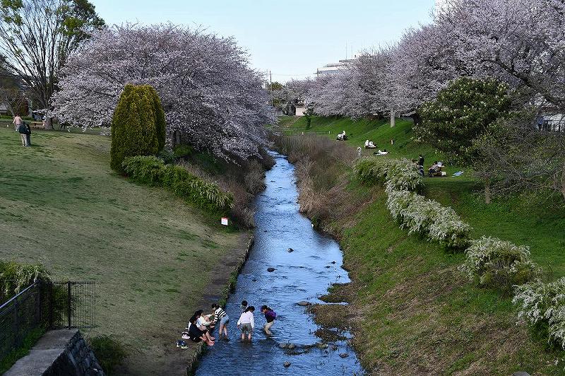 相模三川公園のサクラは、海老名のさくらの名所のトップであり、鳩川の土手や、三川公園の中にも、オオシマザクラやソメイヨシノやジンダイザクラや山桜等、多く植樹されており、子供の遊具やパークゴルフや野球場など2面も整っています。