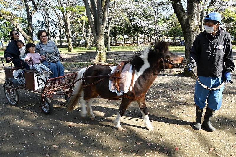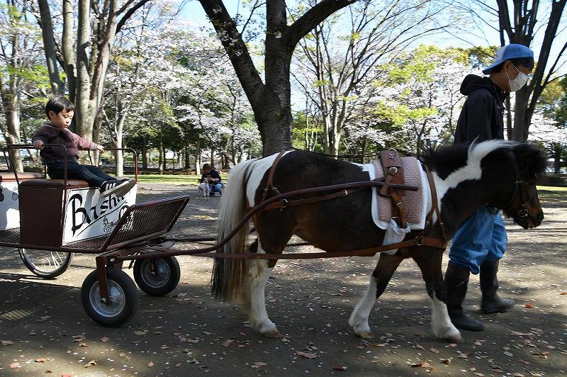 しかし、疎林広場には、3頭のポニーがいて、子供を乗せた馬車が広場を周回していました。
