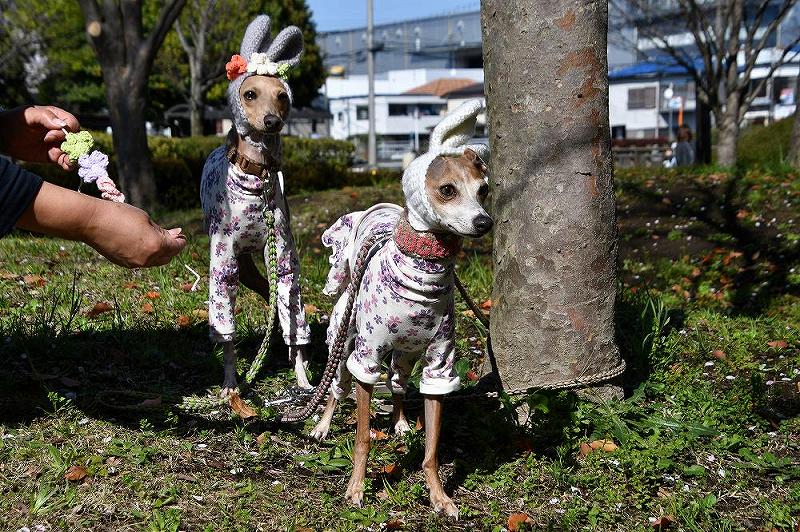 サクラとポニーと、散歩に来た小型犬を被写体として、激写しました、 |