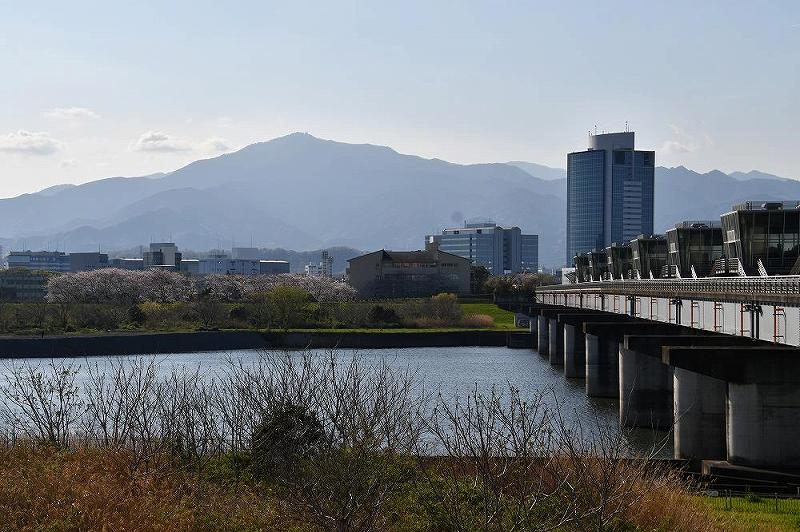 ソニー厚木や厚木ガスタンクや相模川右岸のサクラ並木を遠望しながら、1.5キロメートルほど走ると、「相模大堰管理橋」が見えてきた。