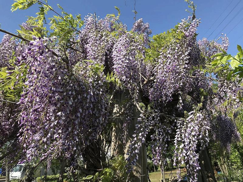 藤の花が咲いており、熊蜂がブンブンと飛んでいました。
