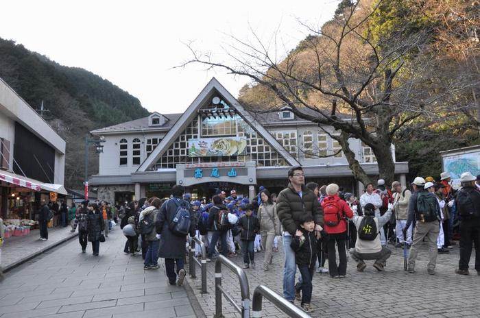 ケーブルやリフトで手軽に山上に登れる為、麓の駅には長蛇の列が出来ている。