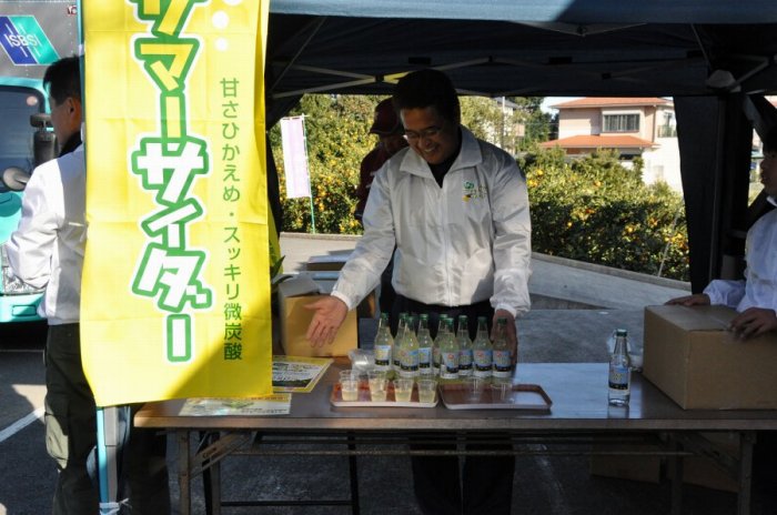 「伊豆稲取温泉よいさかどっ恋」の団長だった。 ・・・話が弾み、本日新発売のジュースをご馳走になった。