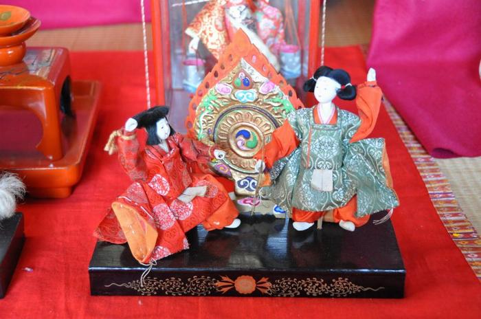 区民から寄贈された昭和初期のお雛さまが3組ほど飾られていた。