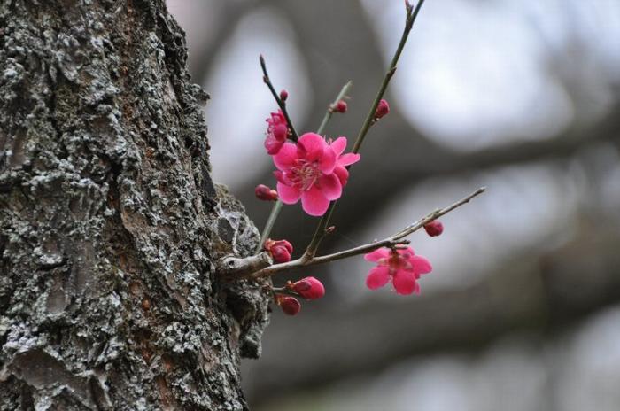 春先の湿った雪は、花の咲いた梅の木に付着して、太い幹までも圧し折られると言う大惨事を引き起こしている。