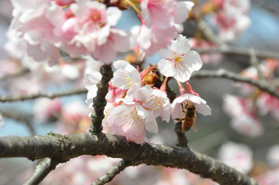 3月20日現在は、「彼岸桜」と「寒緋桜」の一本桜が目立つ存在であった。