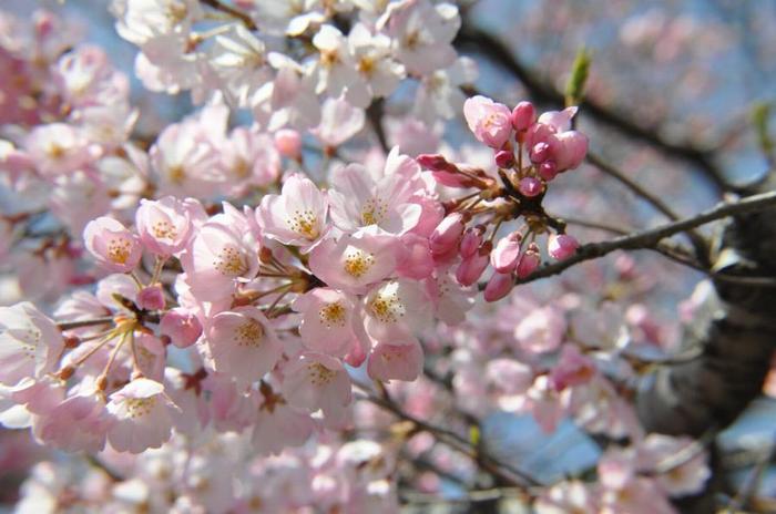 | さて、『このアメリカ』桜を接ぎ木した物が大きな木となり、ソメイヨシノに先立ち開花して人気の的となっている。 ところが、親木のアメリカが色白の花に対して、接ぎ木のサクラの花は、赤みがかっているので、神代植物園育ちなので、「神代曙」と成ったのである。 |