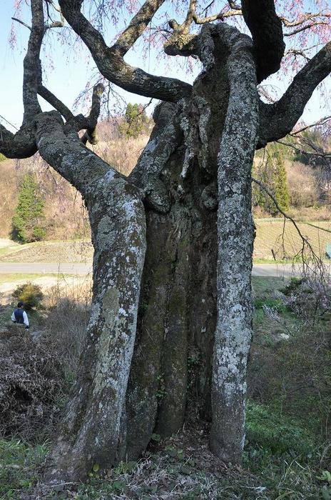 「樹皮と樹肉」だけの桜の木であり、樹齢200年とは言え、三春町や郡山市では若い木かも知れないが、他県に於いては老木である。