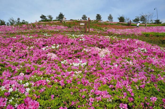 大雨が降った時の雨水処理の為、「大きな調整池」があり、その傾斜地につつじが10万株植えられているのだ。