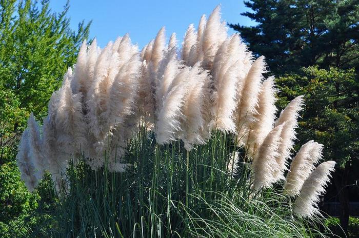 バーベキューガーデン花畑には「クレオメ」が見頃となっており、50メートルほど離れた丘の上には「パンプス」が久し振りの猛暑日の日の光を受けて白銀に輝いていた。