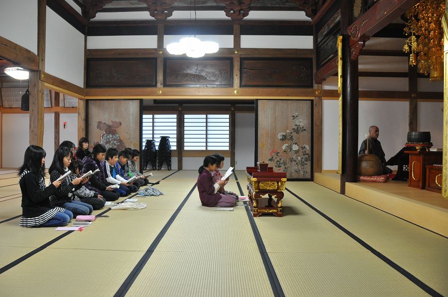 が、「子供達が10人ほど、親が2人の集団」が今からお経を読むというので、取材を申し込んだ。