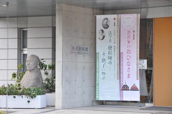 渋沢家ゆかりのひな人形(23体ほど)・ひな道具(箪笥、長持ち、火鉢、貝合わせ、ままごと遊びの小物まで40品ほど)・五月人形(1体)など約60作品を展示しています。 幕末から昭和初期の主な作品の中には、永徳齋製内裏雛、三人官女、三面揃などがありました。 特に、永徳齋は、東京日本橋に店を構えた人形師で、明治から昭和戦後にかけて四代続いた名店でした。 江戸の人形作りの技術の高さが人形にこめられています。 (永徳齋製内裏雛は昨年、三井記念美術館で見た)