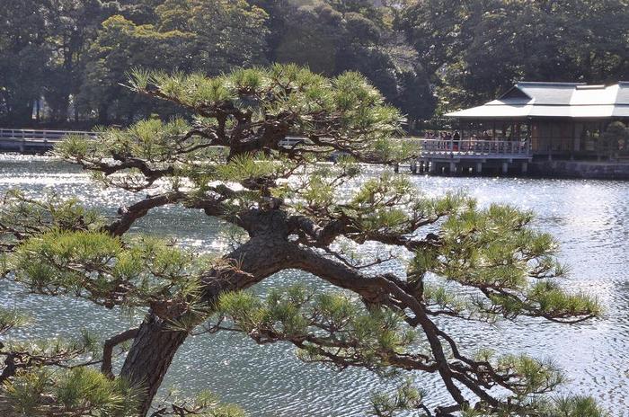 潮入の池から中島の御茶屋を眺めていたら、さざ波の波頭に煌めく耀きに遭遇、早速、被写体にして見ました。