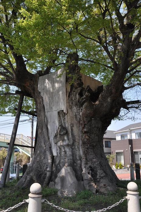 参道入口には、樹齢560年の海老名の大ケヤキ(神奈川県指定天然記念物)がある。 |