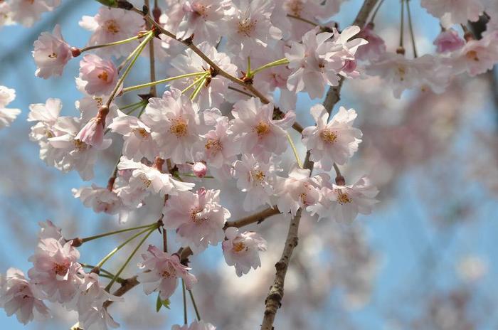 左手の階段を登って行くと、墓地に着きますが、墓地には10本以上のシダレザクラが有りました。