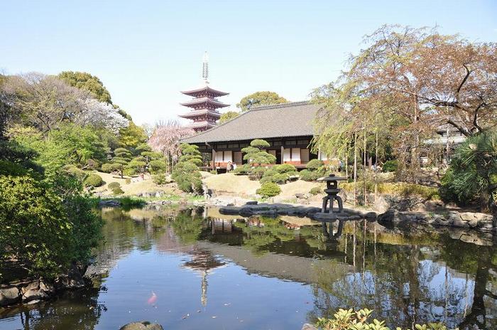 伝法院と浅草寺境内のシダレザクラ