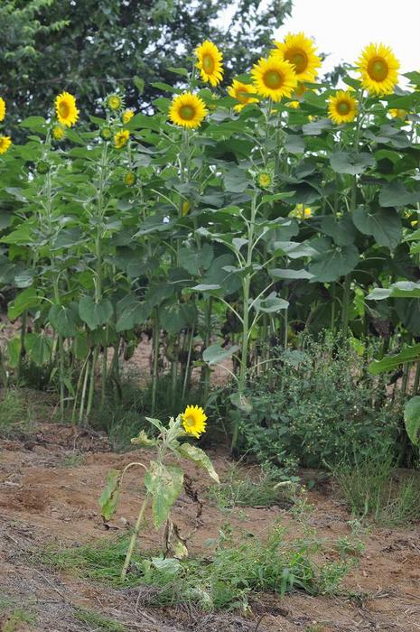 ひまわり畑の種まきは同時期でも、日当り具合や肥料の施し具合や回遊歩道の造り方から、危険な立場に立たされている一本のひまわりが有りました。