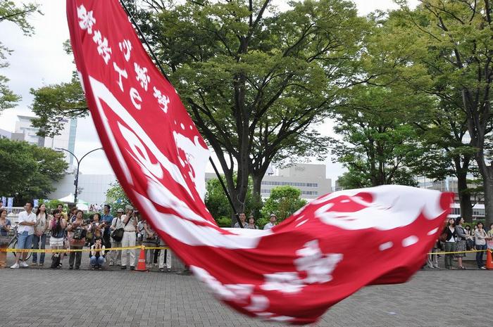 フラフ(大旗振り)の妙技に見惚れ、激写しました。