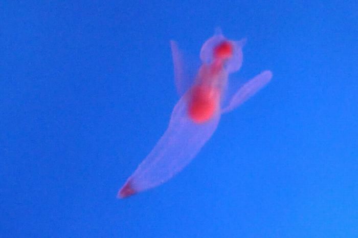 この水族館には、氷の妖精の「クリオネ」がいたので撮影に試みたのだが、水槽の中の海水が撹拌されているため、ピント合わせの難しい小さな被写体で有った。
