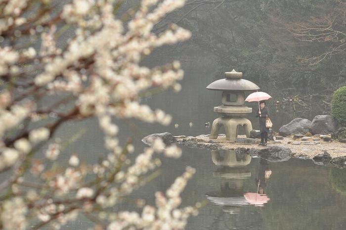 野暮用で、「新宿御苑の大木戸門から100メートルの処」へ出掛けたので、雨降りを承知で、『梅の花と、寒桜の花』を取材に行った。