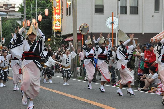 阿波踊り独特の二種類のリズムを自在に踊り、奏でます。