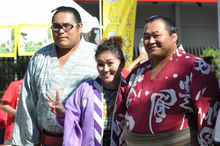 スピーカーから流れる音楽に、ハミングしている顔や、掛け声などで緊張した顔が一瞬緩み、笑顔になる瞬間を捉えて見た。 600枚ほど撮影した写真は、前方の建物からの反射光線で逆光気味の失敗の多かったものの中から70枚弱を選んで見ました。 3枚目の写真は、高知県の「濱長 花神楽」連の地方車から降りた関取と料亭・濱長の女将