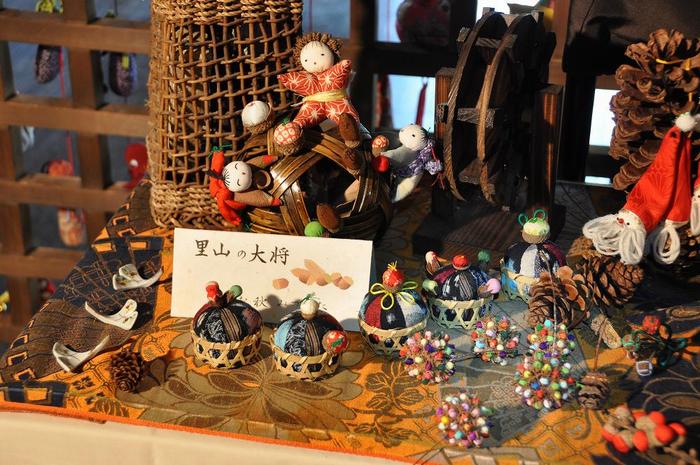 グランドマザー百人の100本の吊し雛や、五節句のグループ分けから外れてしまったのか、「秋模様」を感じられる手作り作品が、堂内の一角に並んでいた。