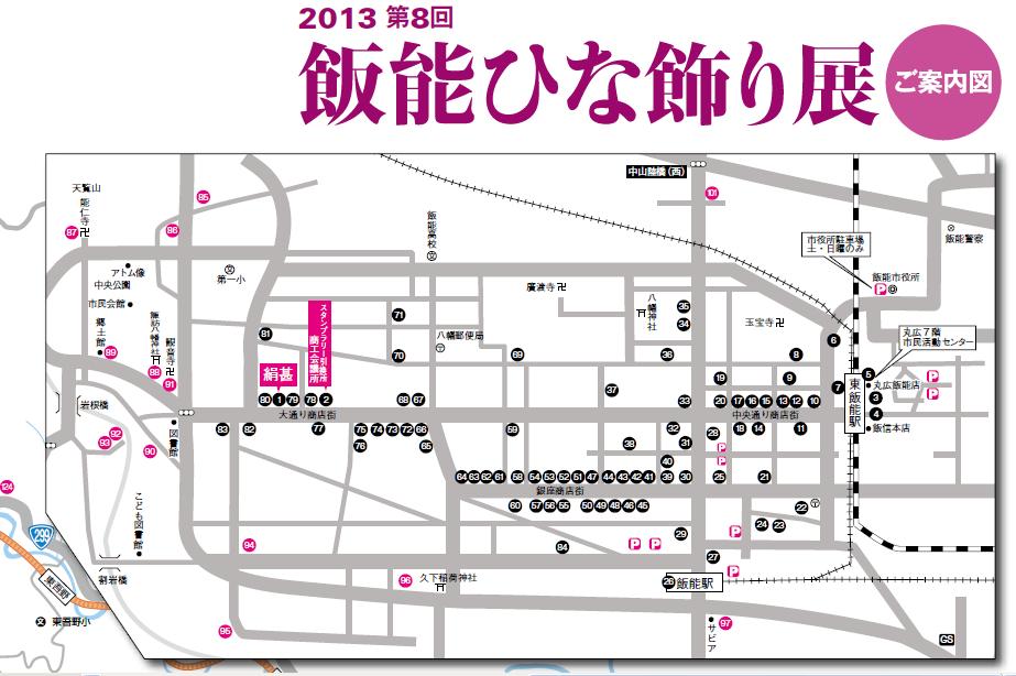「雛めぐりMAP」には、店名と展示物紹介が載っていますので、私が見学したルートではなく、会場番号順にスライドショーをご覧下さい。 |