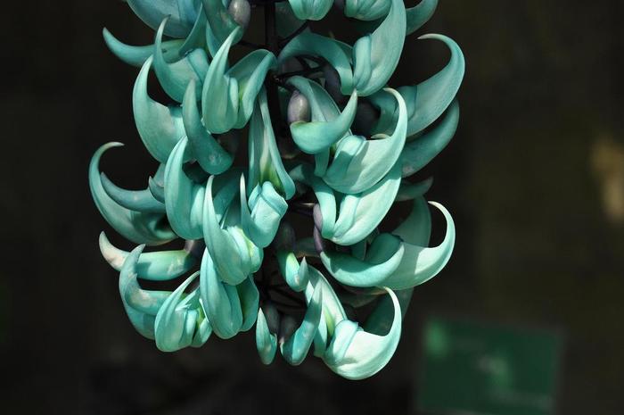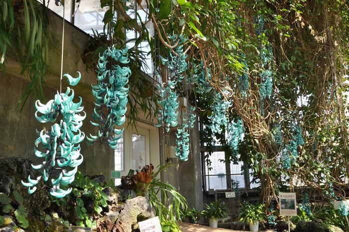 年に数回、調布市の神代植物公園に取材に出掛けるも、大温室内の「ヒスイカズラ」の見頃に出会うのは初めてです。