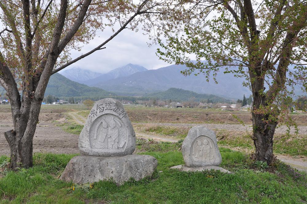 NHK朝の連続ドラマで、「安曇野を舞台とした『おひさま』」で、一躍ブームを撒き起こした道祖神と桜のコラボレーションの場所を訪ねて見た。