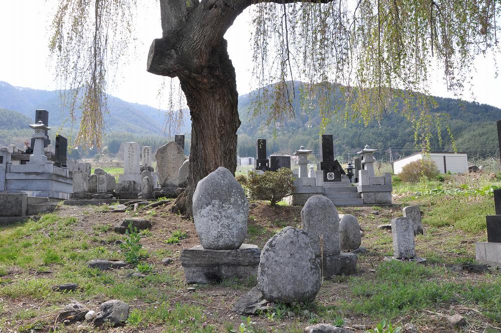 住所は安曇野市堀金三田、墓地が点在しており、墓守桜の巨木がこの地域のいにしえを語っているようだ。