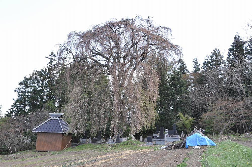 住所は安曇野市堀金三田、墓地が点在しており、墓守桜の巨木がこの地域のいにしえを語っているようだ。