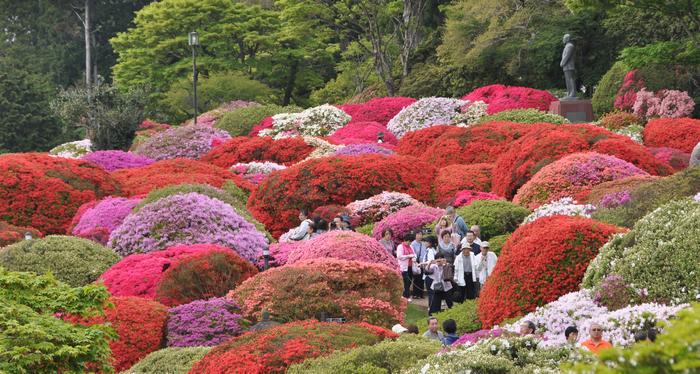 箱根の芦ノ湖畔にある「小田急箱根・山のホテル」のつつじが見頃になったと、ホテルのブログが報じている。