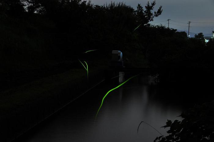 第一駐車場前の河原に4頭ほどの光が点滅しており、時折、スィーーと飛んでいた。
