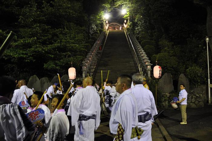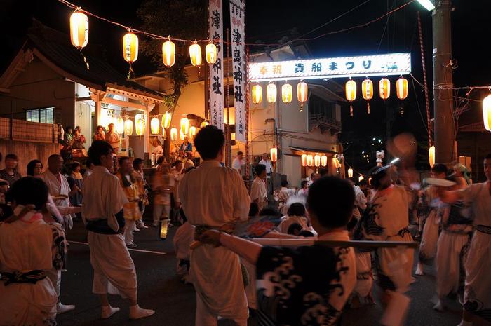 今回はお神輿の宮入を終えた貴船神社の境内と、港町集落の津島神社での奉納踊りを撮影しました。
