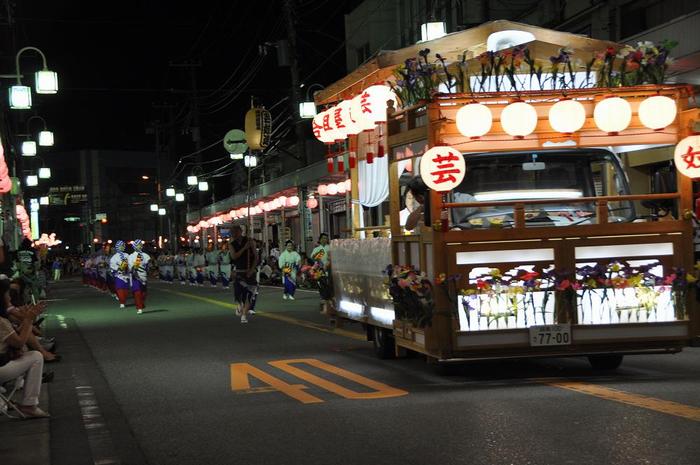 まつりは子供の音楽パレードが先頭で、続いて子供会等の踊りパレードが有り、よさこいグループや役場の職員や病院の先生や看護師のグループ、さらに、フラダンスグループや芸妓の集団が踊りパレードを盛り上げていました。