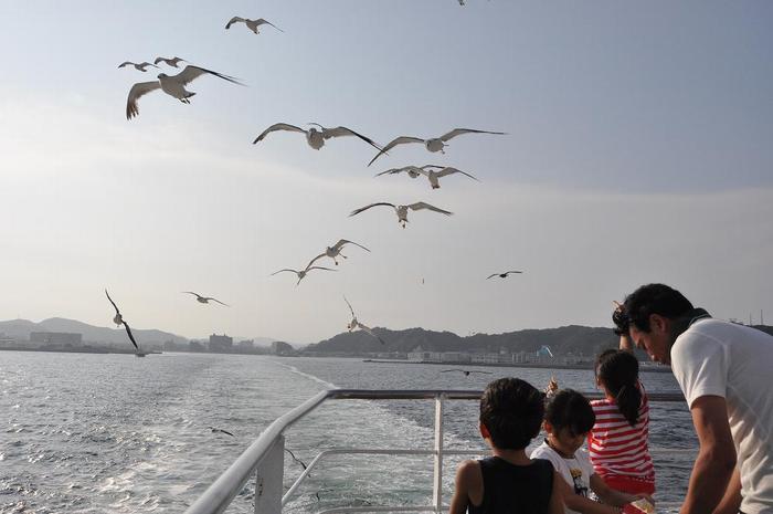 今日も、観光客が「かっぱえびせん」を持って乗船して来ました。
