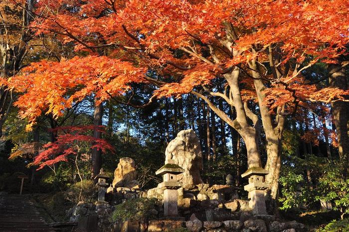 さらに、夕日は斜光となるため、赤いもみじの葉がいっそう赤味を増します。