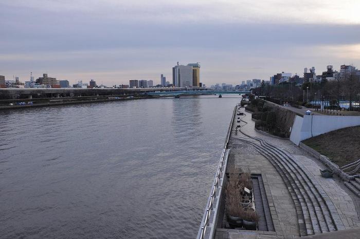 向島百花園(墨田区)から帰路の始発駅の浅草(江東区)への移動は、隅田川に掛かる「桜橋」を渡ります。