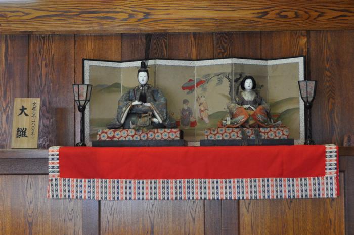 そば処「橋本」の店内にはおばあちゃんがお嫁に来た時に持ってきたという古いお雛様。