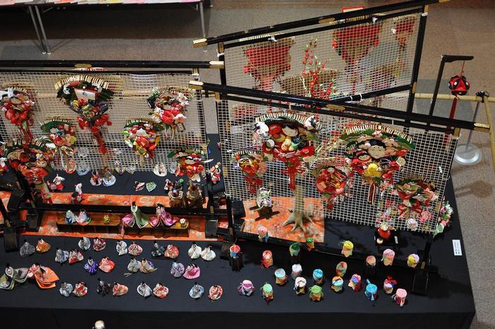 昨年、人形町の「人形市」で出合ったグループ『ちりめん細工 江戸の針』の先生(三好裕子:日本玩具博物館講師)から招待状が届いたので、ちょいと覗いてみようと軽い気持ちで出掛けたのですが、先生から「毎回写真集を作成しているので、見てよ。」 と、言われ、ならば、私もと、シャッターを押す指先に力が入り、3時間ほどで400枚近く撮影しました。 過去にいろいろな場所を取材していますが、トップクラスの「女の手仕事」作品ばかり、生徒数60名、今回の出展は1000点ほどと伺いました。