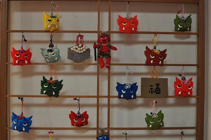 五節句の一つ「節分」をテーマとして作成されたもので、赤鬼・青鬼、桝に入った豆が雰囲気を醸し出しています。