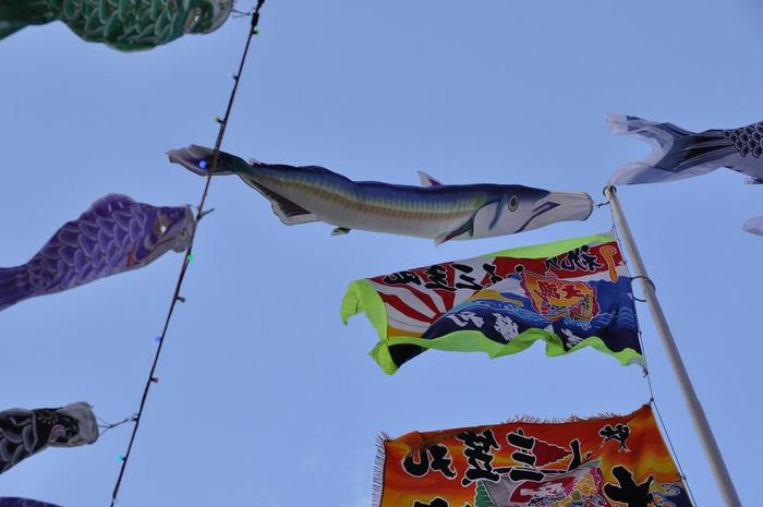 中央のポールには、こいのぼりに加えて“さんまのぼり”も1匹飾り付けていました。