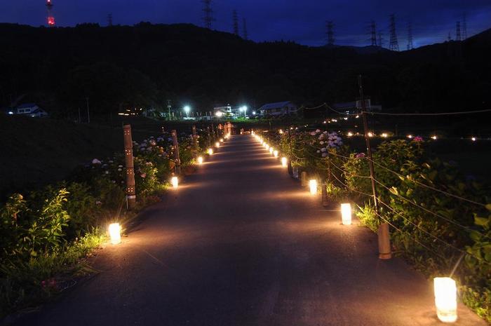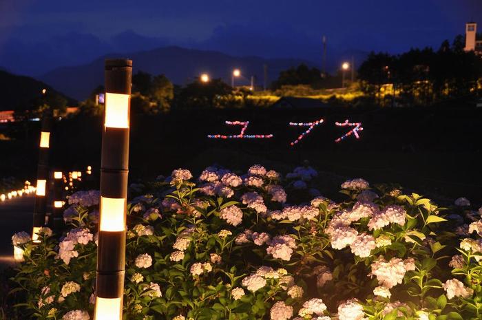 小山町のほたる観賞地めぐりで、マップを入手する為、「道の駅ふじおやま」に立ち寄ったら、「湯船あじさいまつり」がライトアップされて幻想的ですよ。