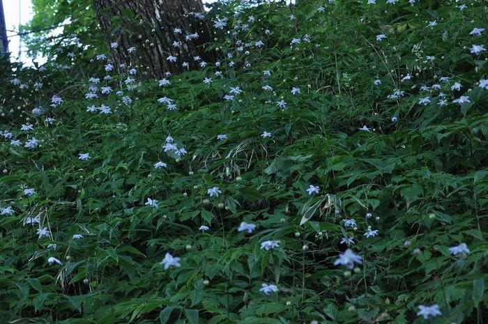 レンゲショウマの群生地は2ヶ所有り、まず、日の有る内に、「武蔵御嶽神社」周辺のレンゲショウマを撮影し、いつもは午前中に撮影する「富士峰園地北斜面(5万株の群生)」ですが、今回は西日が差し込む状態を狙いました。