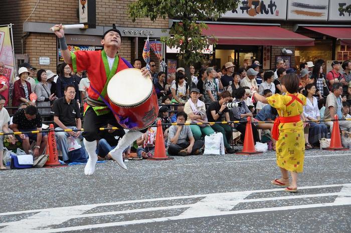 でも、演技が終わり退場する際には、観衆に大きく手を振っている。 (笑!)「なんくるエイサー」チームは東京都渋谷区から来たチーム。