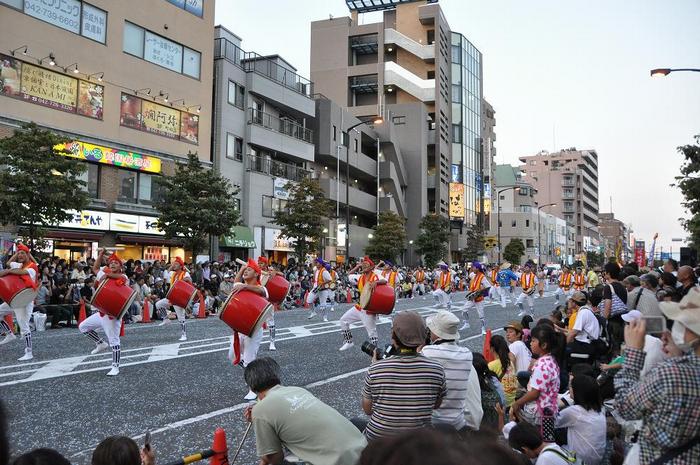 今回の沖縄代表として、本場のエイサー踊りを首都圏の観客に惜しげも無く披露してくれました。恒例により、最終演舞チームの囃子で、うずうずしていた観客が我先とエイサーリズムに、両手を上に上げ、千鳥足で踊り始めたフィナーレも動画に収めました。
