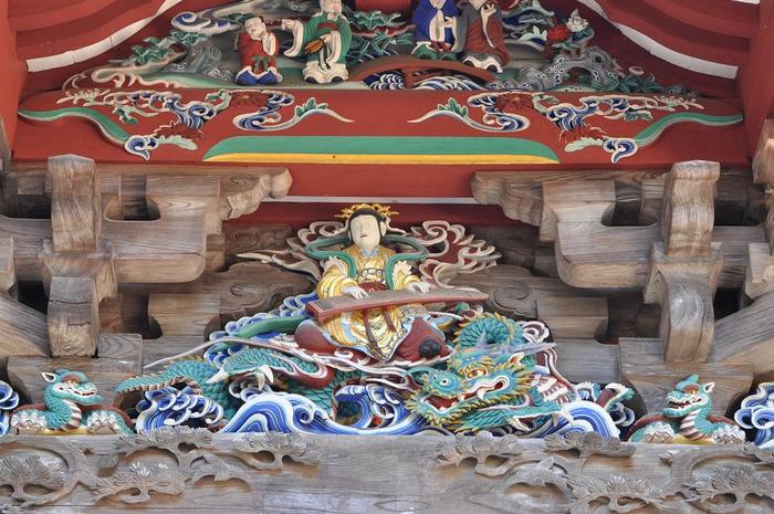 天保5〜13年(1834〜1842)に嵌め込まれた彫刻ですので、時代の経過で色あせていましたが、平成18年に修復され、綺麗に彩色されています。