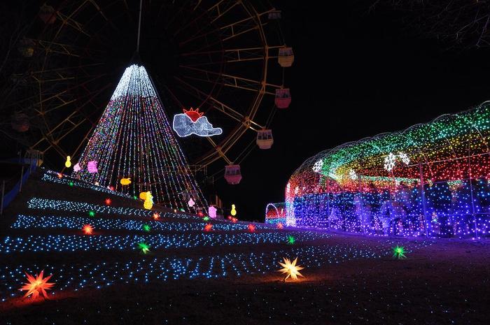 園内の駐車場からイルミネーション会場へ移動する時に、2つの入口から入って、一つの出口に出てくる。