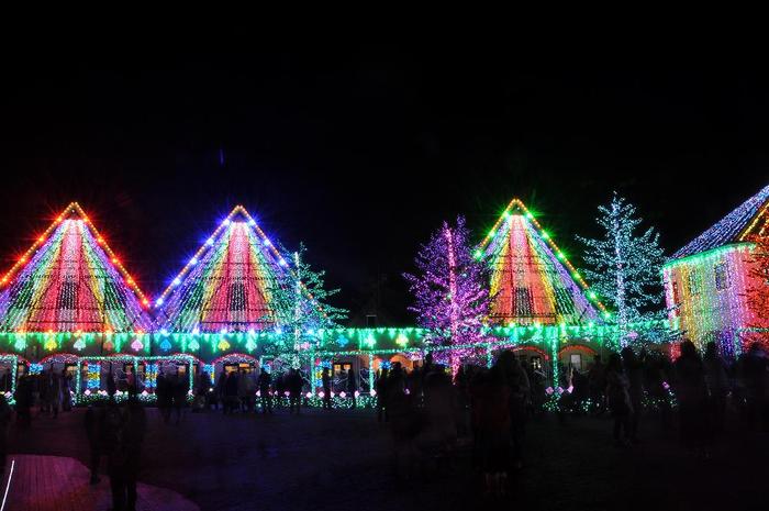 この建物の屋根にアニメーションでイルミネーションが点滅し、人気歌手のアニメソングが流れていました。